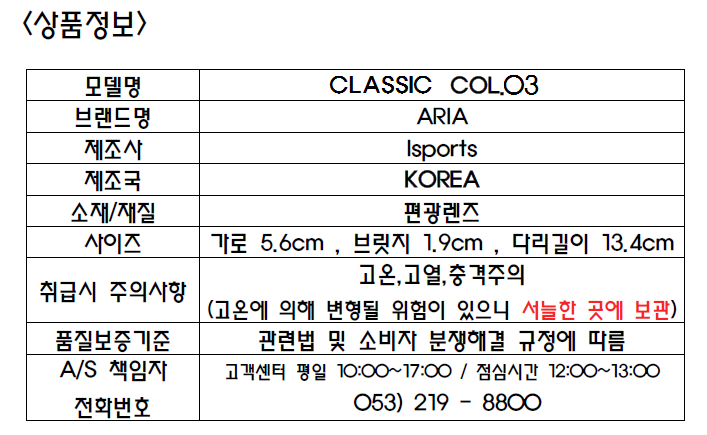 [국내브랜드ARIA] 클래식 편광선글라스 col.03